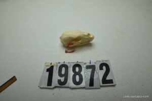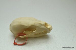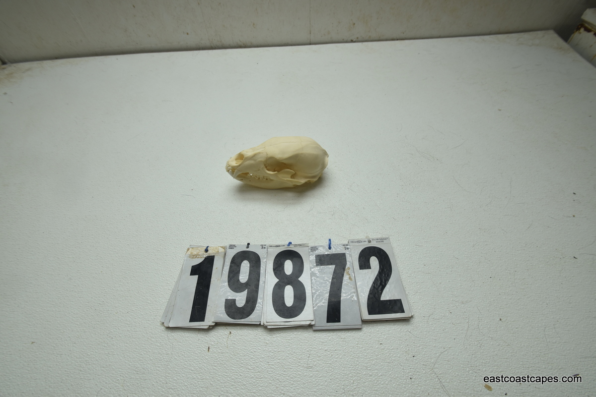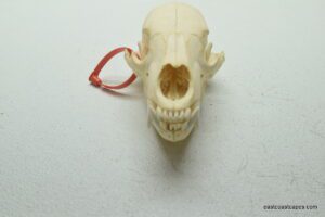 #19872 is a Black bear skull 4.75 x 8.75″ beetle cleaned and whitened B grade about a 100 lb bear