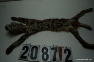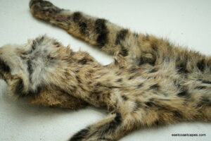 #20872 is a Bobcat life size 16×30+ (FROZEN GREEN) case skinned, frozen with head, feet and tail still intact.  Georgia cat, A- grade (may have a nick or cut but no more than 5 minutes in repairs for a taxidermist) Great spots and coloration. SKIN WILL BE SHIPPED 2 DAY AIR FROM UPS