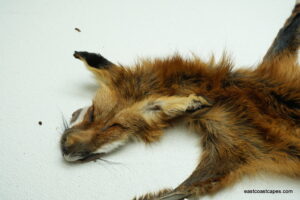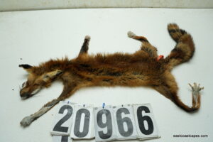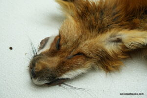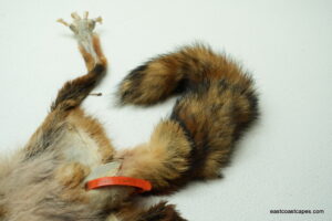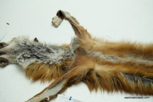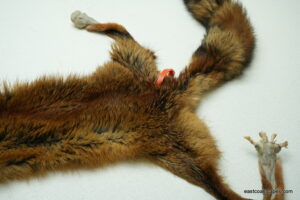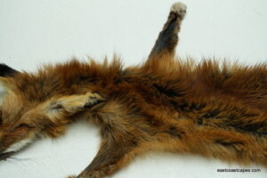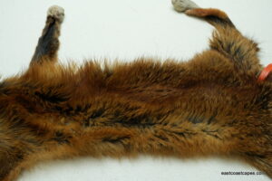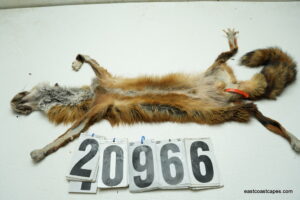 #20966 is a Red fox life size 15×28 case skinned, wet tanned B+ grade (couple nicks/cuts about 5-7 minutes in repairs for a taxidermist) Pennsylvania prime furred male