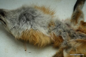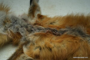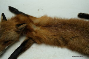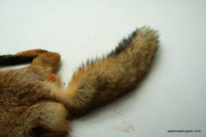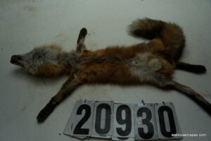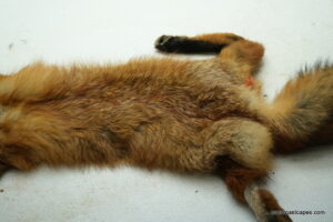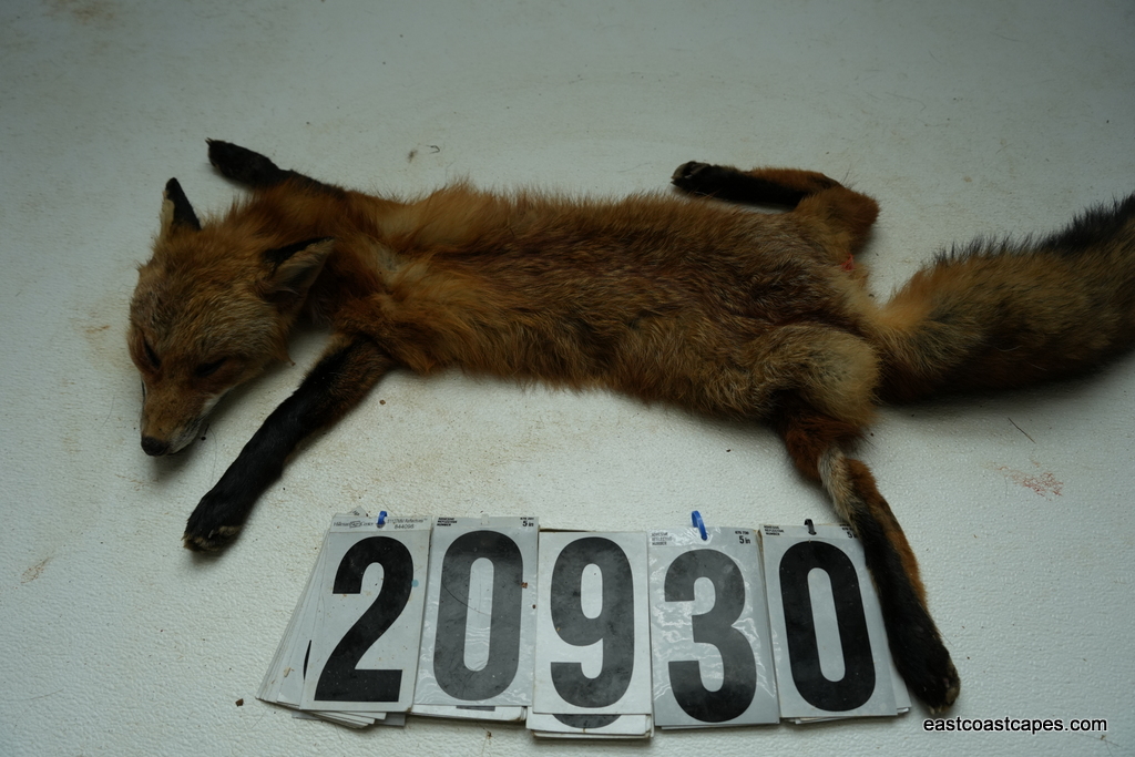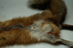 #20930 is a Red Fox life size 15×29 (FROZEN GREEN) case skinned Pennsylvania prime furred male, frozen with head, feet and tail still intact. B+ grade (small cut on chin and right front foot has minor trap damage, have a nick or cut but no more than 10 minutes in repairs for a taxidermist) SKIN WILL BE SHIPPED 2 DAY AIR FROM UPS