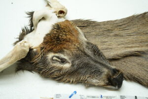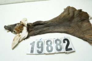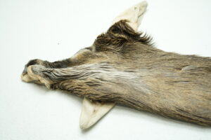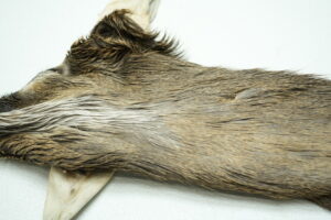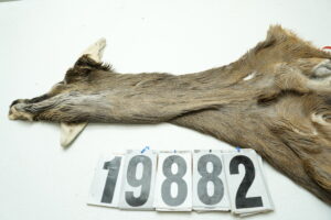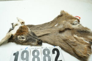 #19882 is a Whitetail deer cape 6.75x16x16x17 (AxCxBxD McKenzie measuring system) med-long hair, short incision, wet tan, B grade (brisket is lightly rubbed but not bad and a couple nicks/cuts about 10 minutes in repairs for a taxidermist)